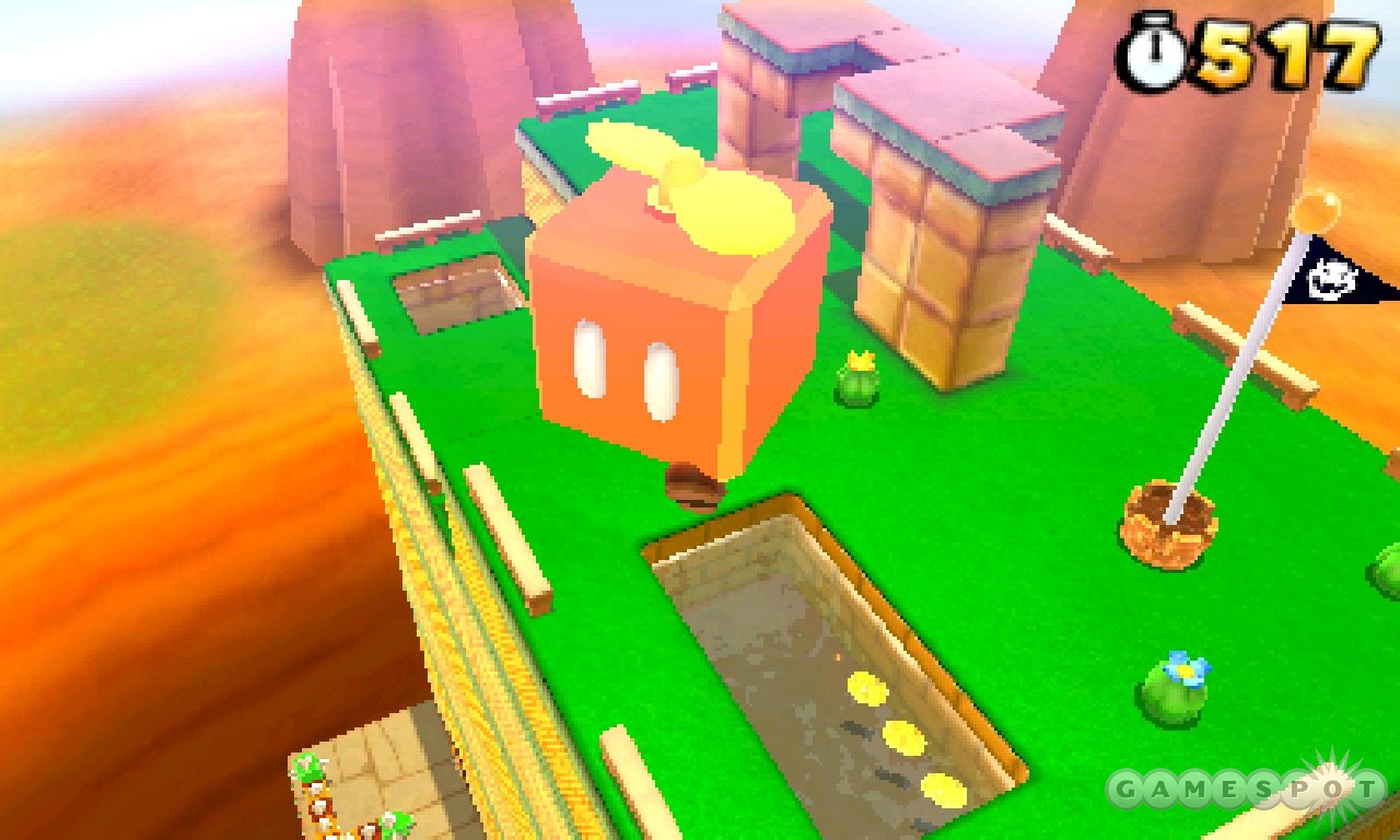 The game isn’t all about looking back though: it has one eye firmly on the future, particularly when it comes to inventive level design that really makes full use of the Nintendo 3DS. Whereas the 3D effect is all but disposable for many games, here it really adds something, particularly in helping you to judge distances to platforms a lot more easily: I found a struggled a lot more on some levels when I switched them to 2D. There are also a few levels that look truly stunning, such as a vertigo-inducing level in which the camera switches to above your head and has you falling into the screen against the backdrop of some enormous waterfalls.
