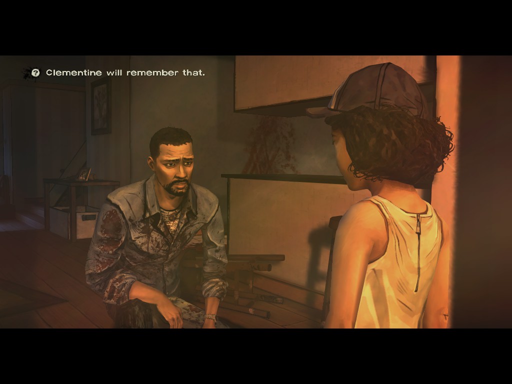 But what strengthens this emotional investment even more is the fact that your decisions have permanence. Even now, as I’m just starting out on the second season, decisions I made at the start of the first season are still having repercussions. The message “Clementine will remember that”, sums up the appeal and the terror of the game – the decisions you make have a permanent effect on the girl you’re charged with looking after.