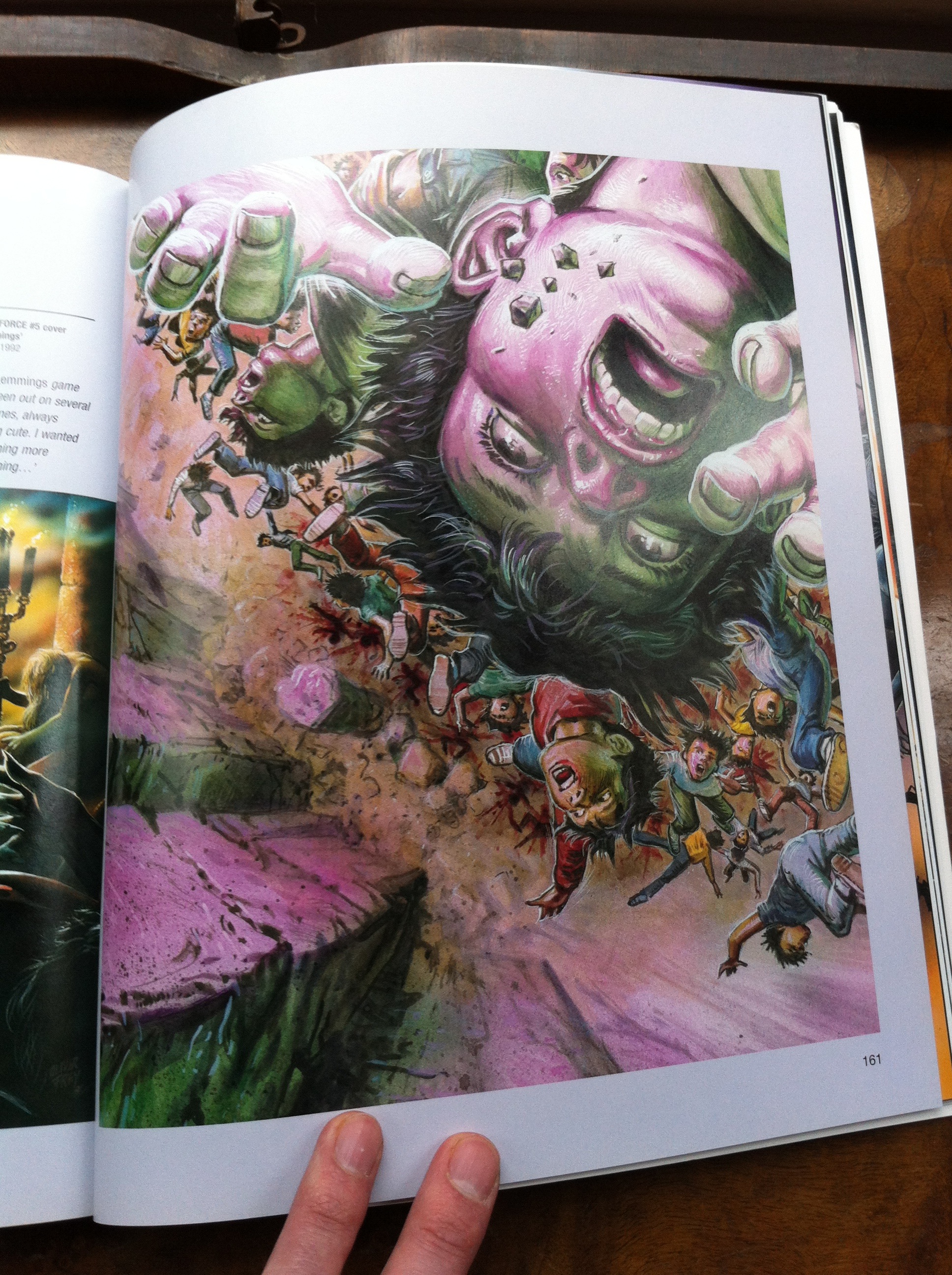 This is one of my favourite of Oli’s paintings – his idea of what a realistic Lemmings would be like if it featured people. I think this image appeared on a SEGA magazine in the late eighties. I love the use of perspective, but it also captures what appealed to me about Oli’s work – there’s a dark undercurrent that made video games seem dangerous, forbidden and exciting, even if they were mostly blocky pixels shuffling around on a black screen.