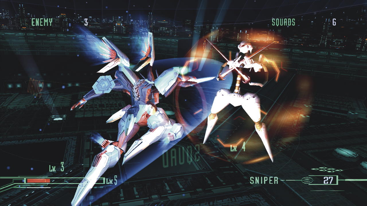 The actual gameplay involves boosting about in your ‘orbital frame’ (i.e. massive robot) and essentially whacking the square button as fast as you can when you encounter any other massive robots. There are about ten or so secondary weapons you can collect over the course of the game, yet all but three – which you get right near the end – are utterly useless. I mean REALLY useless. I tried using them occasionally as an alternative to just going up to enemies and whacking them in the head with my big fancy sword, but I may as well have just been breathing heavily on them for all the damage they cause. It’s a shame, because just flailing your sword around all of the time gets old pretty quickly, and it doesn’t help that there are only three (yes, three) types of enemy – all of which require pretty much the same tactics. That is – you guessed it – smashing them about the body and face with cold steel (or whatever your future sword is made of).