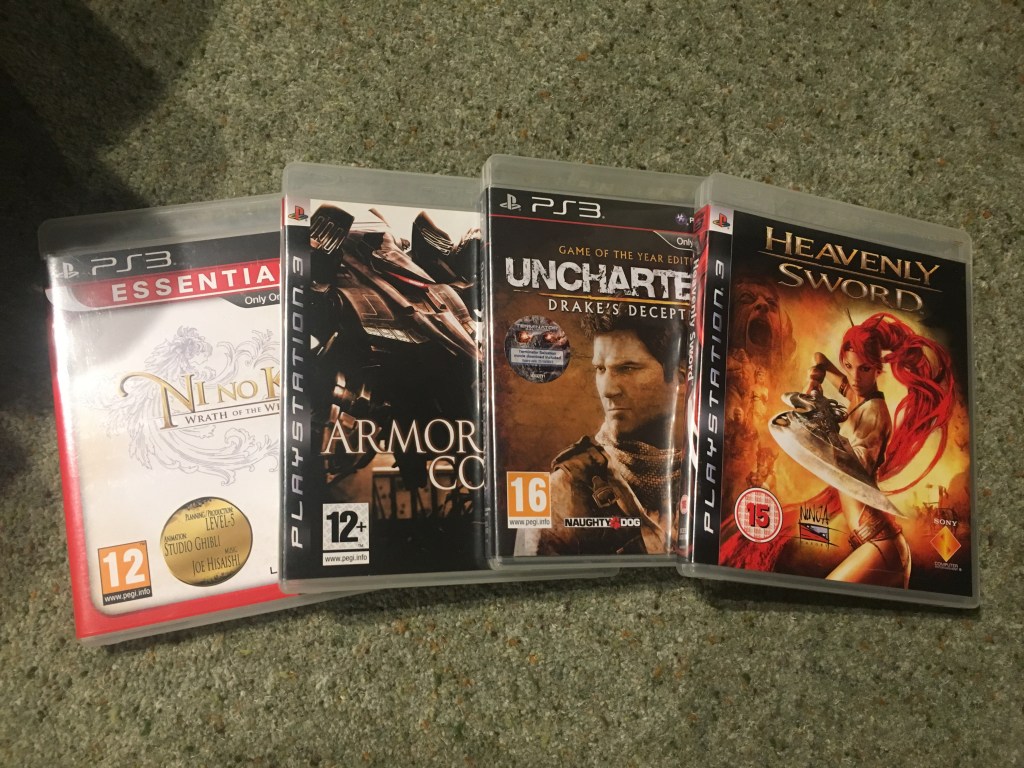 Onto the PS3. Ni No Kuni is a game that’s been on my radar for years, and I finally picked it up early last year. I know I’m going to love playing this Studio Ghibli inspired RPG with added Welshness, but I keep passing over it simply because I know it’s a big game, and my gaming time is so limited these days. Armored Core was a gift – I’ve never played a game in the series before, and I’m not sure what to expect. I’m sure I’ll eventually give it a go one of these days.