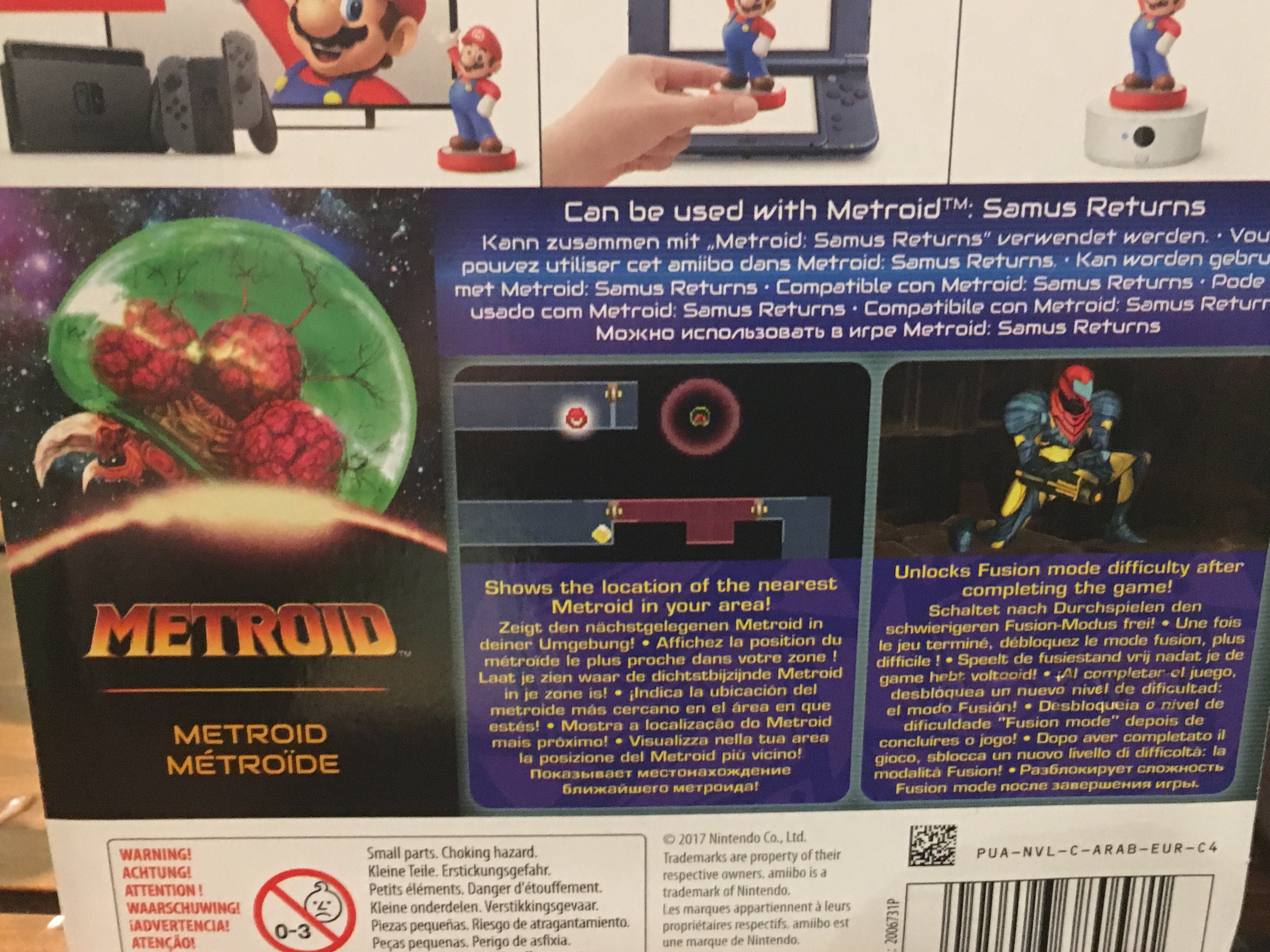So Samus gives you an Aeion reserve tank and unlocks some Metroid II artwork in Metroid: Samus Returns, which seems pretty nifty. But Squishy Metroid let’s you find nearby Metroids (makes sense) and unlocks Fusion mode when you finish the game, which sounds even niftier. Anyway, let’s see what the amiibos look like up close.