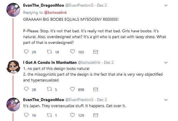 I hate the mentality of, “Well if you don’t like it you can not buy it,” or “Then go somewhere else.” It derails from the issue, because the person doesn’t want to deal with the idea that something they like that has issues that don’t affect them could be problematic. So instead of looking at it objectively, they attack the person who’s pointing out the problem. I’m a self-proclaimed SJW, so I’ve dealt with that a lot. The criticism is valid, but the people who don’t have to deal with the issues it addresses, can ignore it and then accuse the ones who go of “ruining their fun.” Frustrating.