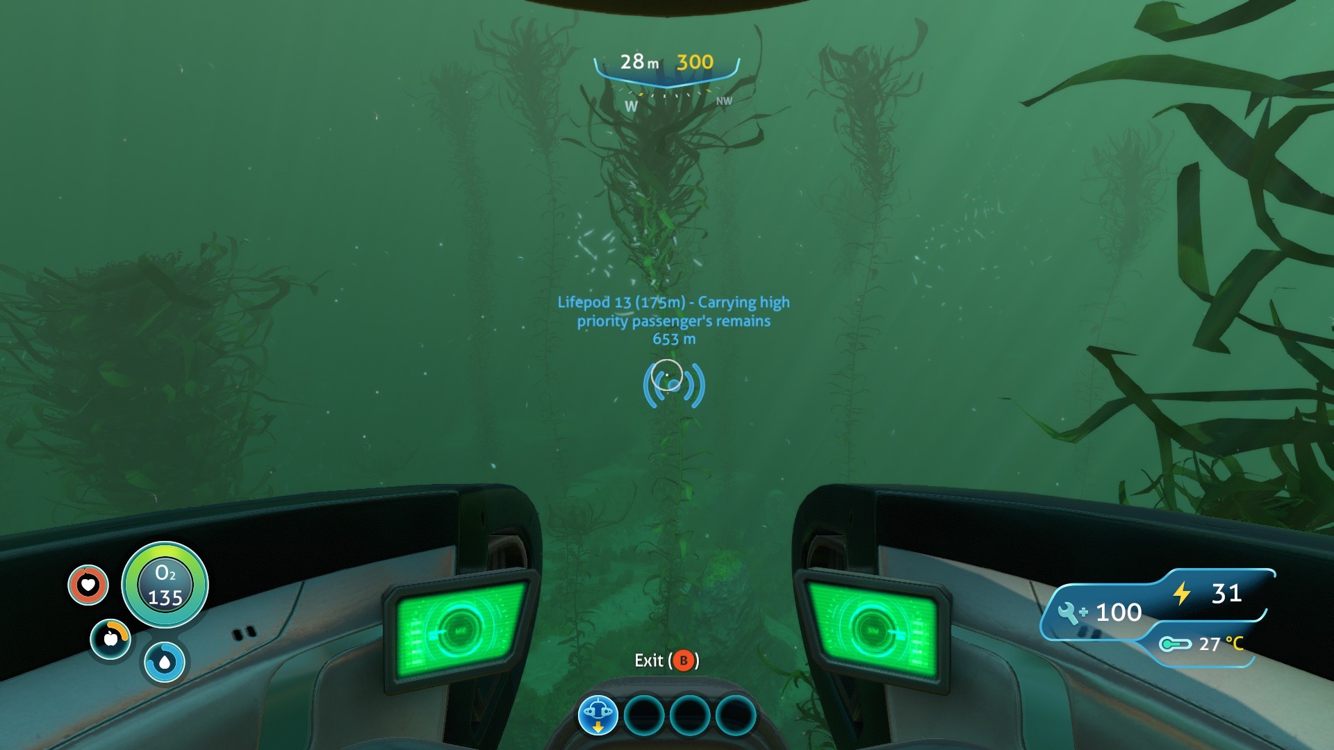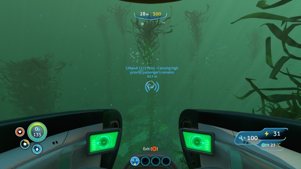 I’ve been playing since March 2017, the game having been hurled into my field of vision by Steam’s handy ‘recommendations’ feature. At its core, it’s a survival game, and seeing as I have a thing for the survival genre, this was a welcome plug indeed. The setting is thus: your nameless protagonist just about makes it into an escape pod before the starship you were traveling on explodes in the upper atmosphere of an uncharted ocean world. During a rocky descent, you are knocked unconscious by a violently flailing metal door panel and wake up, however long later, with your life pod completely in flames. You get up, grab the fire extinguisher and with a pull of the trigger to snuff out the blaze, you’ve started the game. A few hints and tips from the handy PDA tablet later and you’re ready to get on with your primary mission: survive.