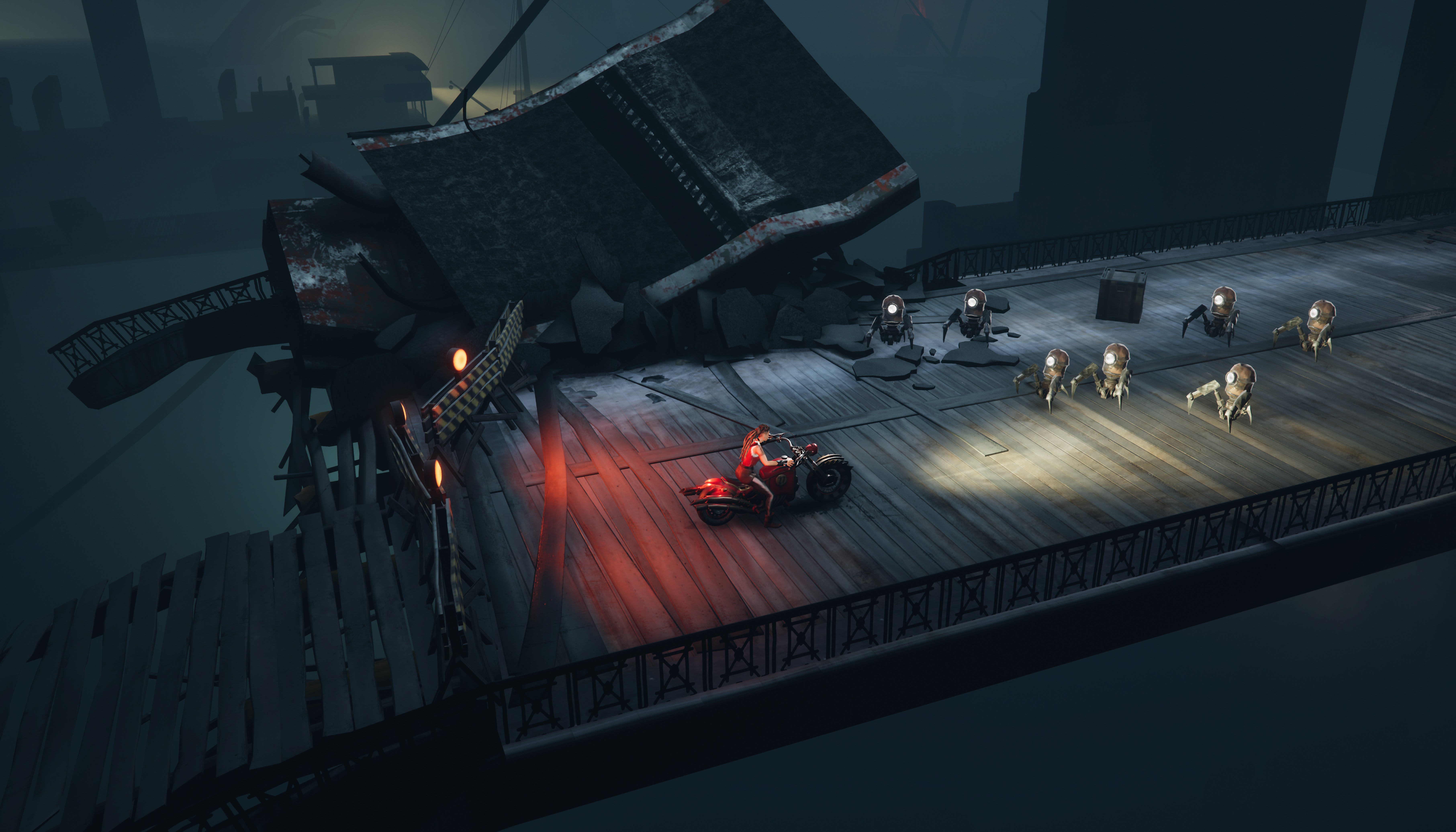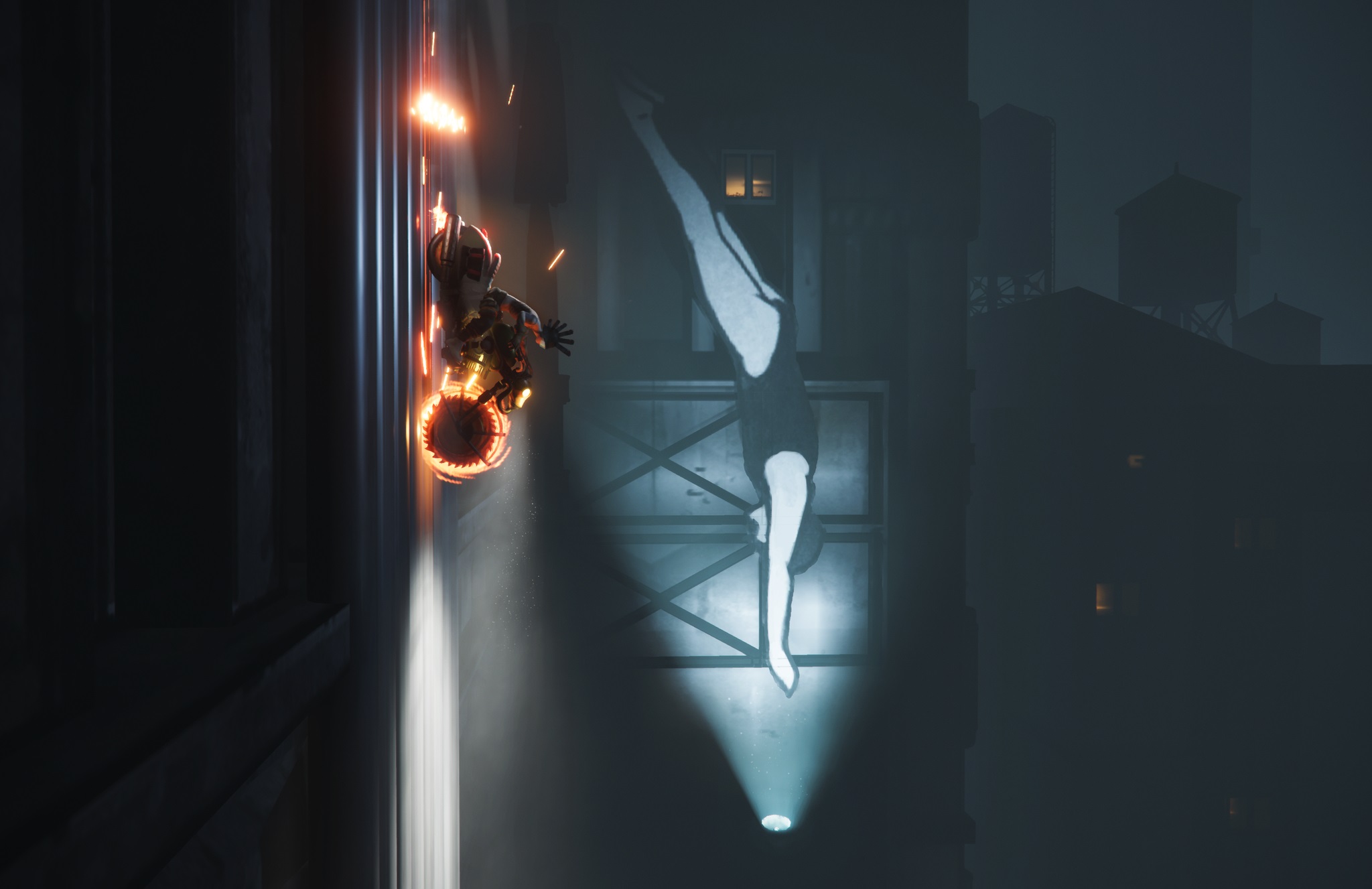 The controls are brilliantly precise, which is what makes it all so much immediate fun – it’s clear that the Polish developer Tate Multimedia has spent years honing its bike-recreation skills with its series of Urban Trial bike games. The handling feels spot on, and hurling your steed around the dieselpunk levels is pure joy. I also particularly love that slow motion is activated by default whenever you leap into the air from a ramp, so you can watch the glory unfold as you ram your chainwheel into an unlucky robot’s head, or make a daredevil leap across the rooftops with centimetres to spare. The chainsaw wheel isn’t just useful for mashing robots, either – you can also use it to drive up sheer walls. Which is obviously very cool indeed.