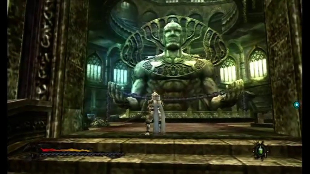 And the chain is really what the gameplay is built around. You can aim it anywhere on the screen by pointing with the Wii Remote, and it’s essential for latching onto ledges, swinging from hooks and pulling distant levers. It’s also pretty handy in combat: you can grab a monster with it and waggle the remote to rip the chain away again, causing damage. Or you can tie one monster to another, so that any damage you do to one is also transmitted to the other. You can even hurl smaller monsters across the room, or twirl them round and round to collide with other baddies. It’s pretty fun, if a little difficult to get to grips with at first – it took me a while to master the chain’s full move set.