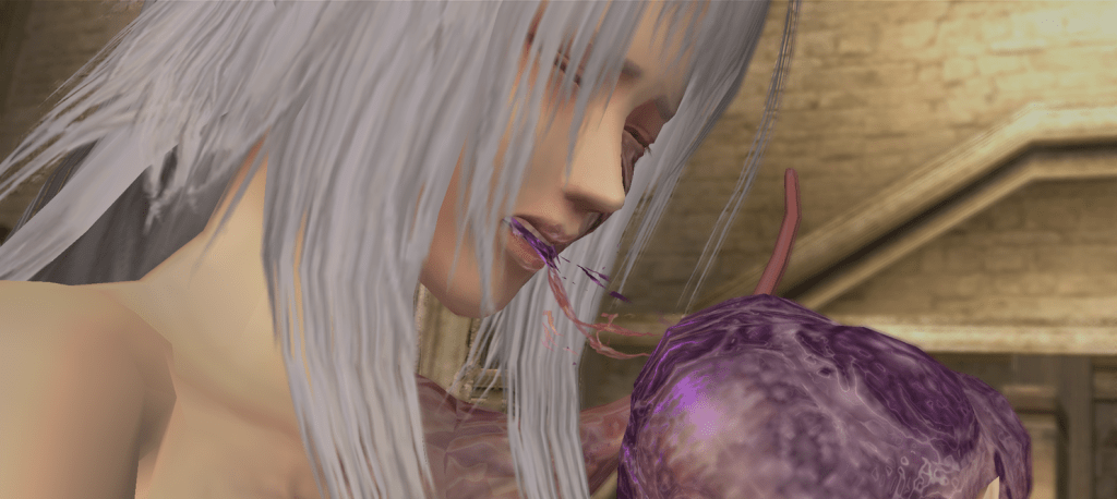 Apart from the versatile Oraclos Chain, the thing that really makes Pandora’s Tower stand out is the ever-present time limit. A circle in the bottom left of the screen represents Elena’s gradual transformation into a monster, and you have to keep bringing beast flesh back to her to reset the timer. If you leave it too long, the transformation begins, and your affinity with Elena deteriorates – but you can increase the affinity by chatting with her and bringing her gifts. And you’ll need the affinity meter to be right near the top if you want to get the best of the five possible endings. I did just that, but I watched the other endings on YouTube, and my god they’re bleak. This can be a dark game at times. (You can watch all the endings here if you don’t mind spoilers.)