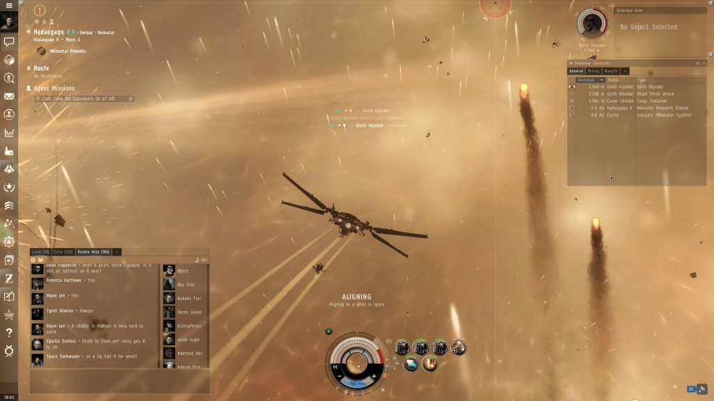 While the tutorials are undeniably helpful, there’s a lot that they don’t tell you. Sometimes this are just oversights in the explanation; for instance the “Exploration” career path requires you to manage some probes you’ve just launched. The problem I had was I didn’t see any explanation of how to do that. After some heartfelt but very crude pleas to the gaming gods (and Google) I found the answer. Alt-P, for the record. Beyond this though, there’s just far too much in EVE to fit into a structured tutorial. Fortunately, the game’s community does a great job of filling in the gaps. I found the EVE University Wiki very helpful and there’s an active and supportive “rookie chat” in-game which acts as a Q&A for new players. It’s worth noting although that the fact the game has been running for so long means there’s a lot of out of date information online, so random internet searches are not always reliable.