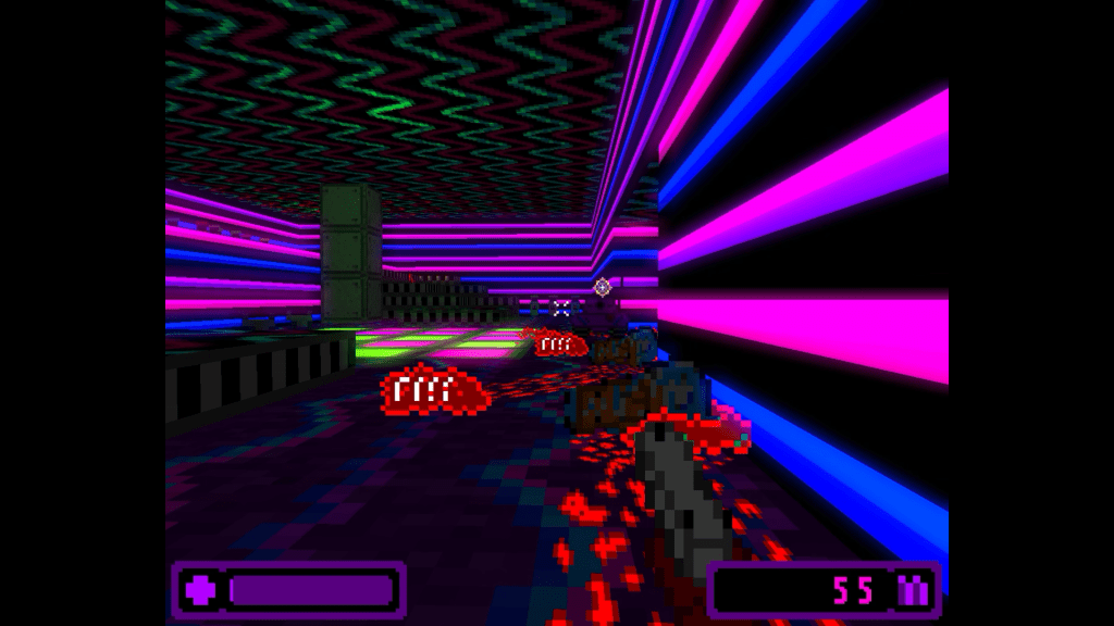 Back to the good stuff! Chromatic Aberration is effectively a love letter to Doom (1993) era shooters. Set in an 80’s-style future city, you get drafted into the resistance against AI controlled cyber-soldiers who roam the streets. This quickly leads to the kind of frantic just-keep-moving gunplay that anyone who has played those older titles will be familiar with.