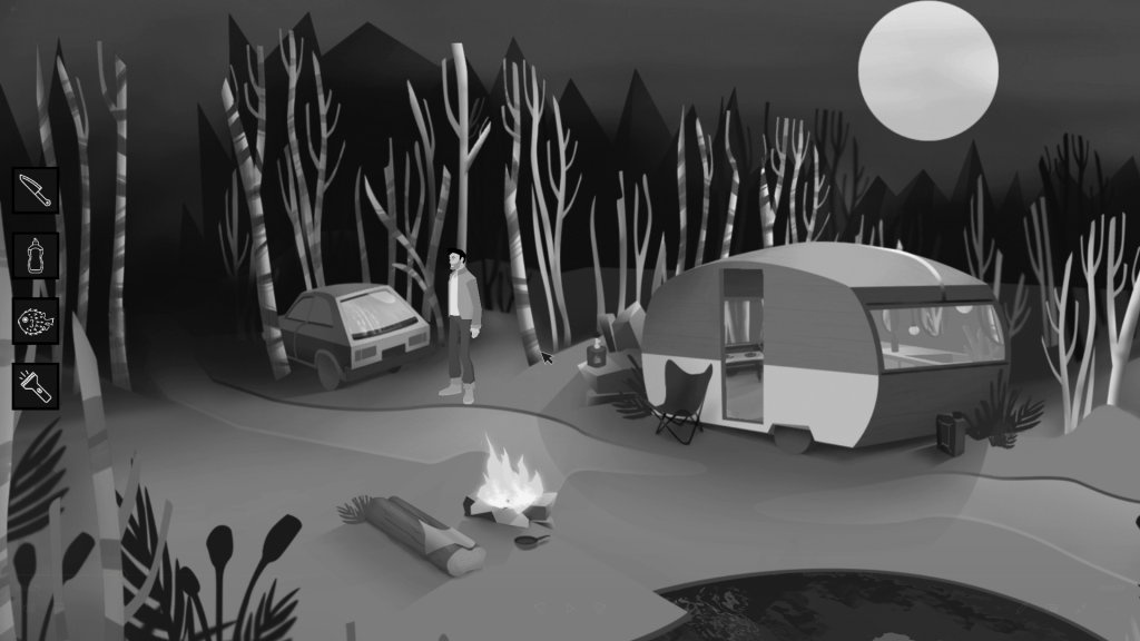 Another monochrome game! Although, this one is quite good. Awake was originally an entry in Adventure Jam 2016. It was well received and has now been reworked and released as this “definitive edition”. A point-and-click adventure game, Awake is set at an isolated campsite, where a couple are having a romantic getaway. However, it soon becomes apparent that they are not alone…