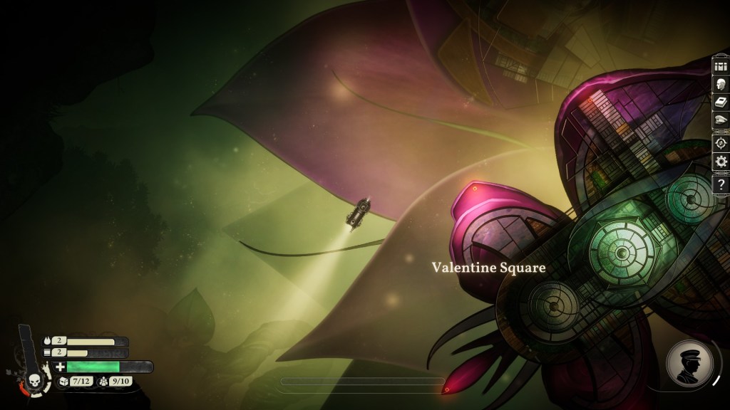 All this is a Very Good Thing, because it shifts the focus more towards the story. Or rather, stories, as Sunless Skies is basically a fantastical web of tall tales that you gradually uncover through your exploration. You’ll come across some macabre and wonderful things. Obsessed scientists conducting weird experiments at a bizarre, mostly carnivorous nature reserve. A sort-of spa treatment centre run by devils. The grave of what might well be a god hidden in the woods. A sentient, space-faring fungus. An idyllic English village green on a floating island. And all of this in just the first area you visit.