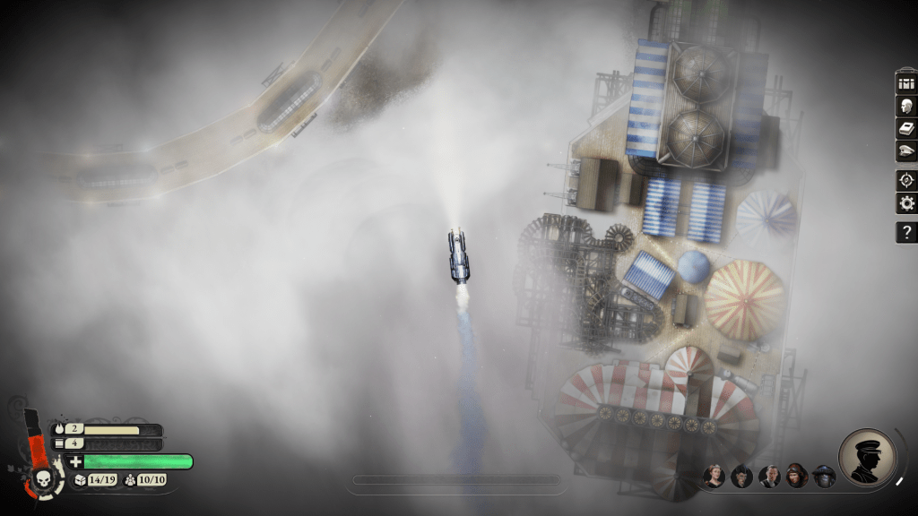 Having said that, simply surviving battles is much harder. Enemy attacks tear through your hull like it’s paper, and running away isn’t always an option, as many enemies have guns with ranges that can hit your retreating locomotive. In short, I have died A LOT in this game. Certainly a lot more than in Sunless Sea. And on that note, I was a bit miffed by the removal of the manual save in this game – the clear intention is that you should role play as a captain, then when that captain dies, you create another and take up where they left off. And in that respect, death is less punishing in Sunless Skies than its prequel, with your subsequent captains retaining a lot of experience, along with their locomotive. But death is still very punishing.