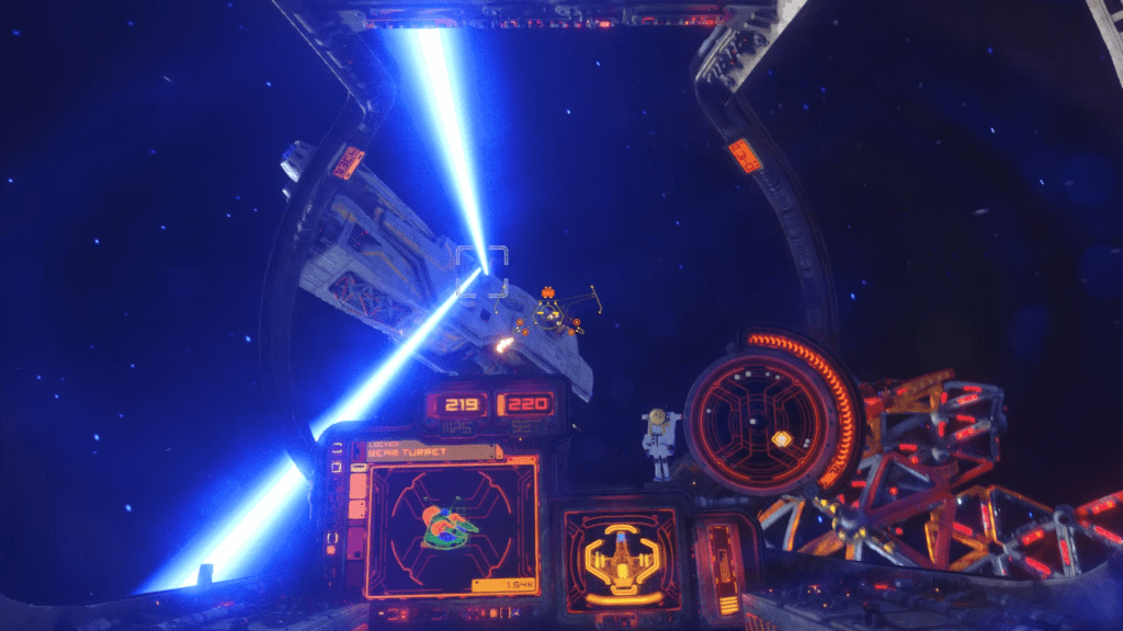 Outlaw is a “sort of prequel” to Double Damage’s 2015 title Rebel Galaxy. It’s really only classed as a prequel because it’s set in the same universe as the previous instalment, but earlier in the established timeline. As well as boldly eschewing colons, the developers have shifted emphasis away from the larger capital ships of the first game to smaller fighters and haulers.