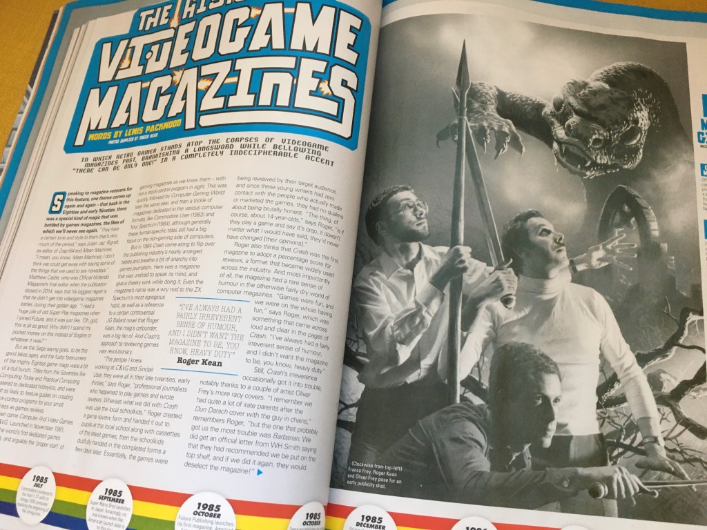 I spoke to various games-magazine luminaries for the feature, including Roger Kean (Crash!), Julian ‘Jaz’ Rignall (ZZap!64, C+VG, Mean Machines), Steve Jarratt (Zzap!64, Total!, Edge) and Matthew Castle (NGamer, Official Nintendo Magazine), and it was a challenge to squeeze in all their great quotes, even with six pages to fill. Indeed, I originally planned to include a lot more about Edge, but I just ran out of column inches in the end. It came down to choosing between Steve’s quotes on Edge or on Total!, and I went with the latter because the revelation that the first issue of that magazine was created in secret in a loft was just too good not to include.