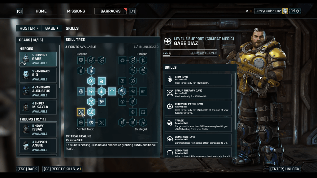 The squad building is one of the ways Gears Tactics fell a bit flat for me. Your fighters are split between “Heroes”, who are critical to the story and appear in the cut-scenes, and “Troops” who are the recruitable grunts. The death of a hero character will result in an immediate mission failure, but the regular troops can be killed permanently. However, there are always ready replacements free to recruit. They’ll be appropriately levelled for the current point in the story too.