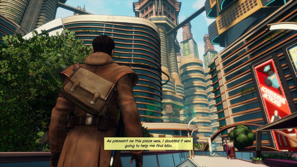 And that’s the trouble, really. Beyond a Steel Sky is considerably rough around the edges, and although the game only full-on crashed on me once, it’s riddled with things that detract from the experience. The review code came with a long list of bugs that the developers are planning to fix before release, but there were plenty of other bugs beside those that I noticed on my playthrough, like the hacking tool suddenly becoming unresponsive, NPCs walking through each other, and two occasions in the atrium when examining an object prompted Foster to walk slowly all the way back to the entrance of the area to deliver his musings, with no amount of frantic button mashing able to dissuade him from his ponderous walk.