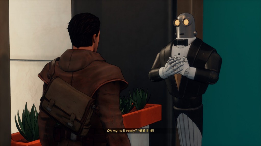 Sadly, the second half of the game doesn’t quite live up to the first half. The rooms in the back end of the game feel far more sparse than in the first half, with far fewer things to interact with and fewer people to talk to. I got a strong sense that the developers were rushing to get the game finished, and didn’t have time to lavish as much care on the latter half as on the first. I mean, the starting area alone has five people to interact with and about an hour’s worth of puzzles before you even see the opening credits, yet there’s nothing anywhere near as elaborate in the final hours.