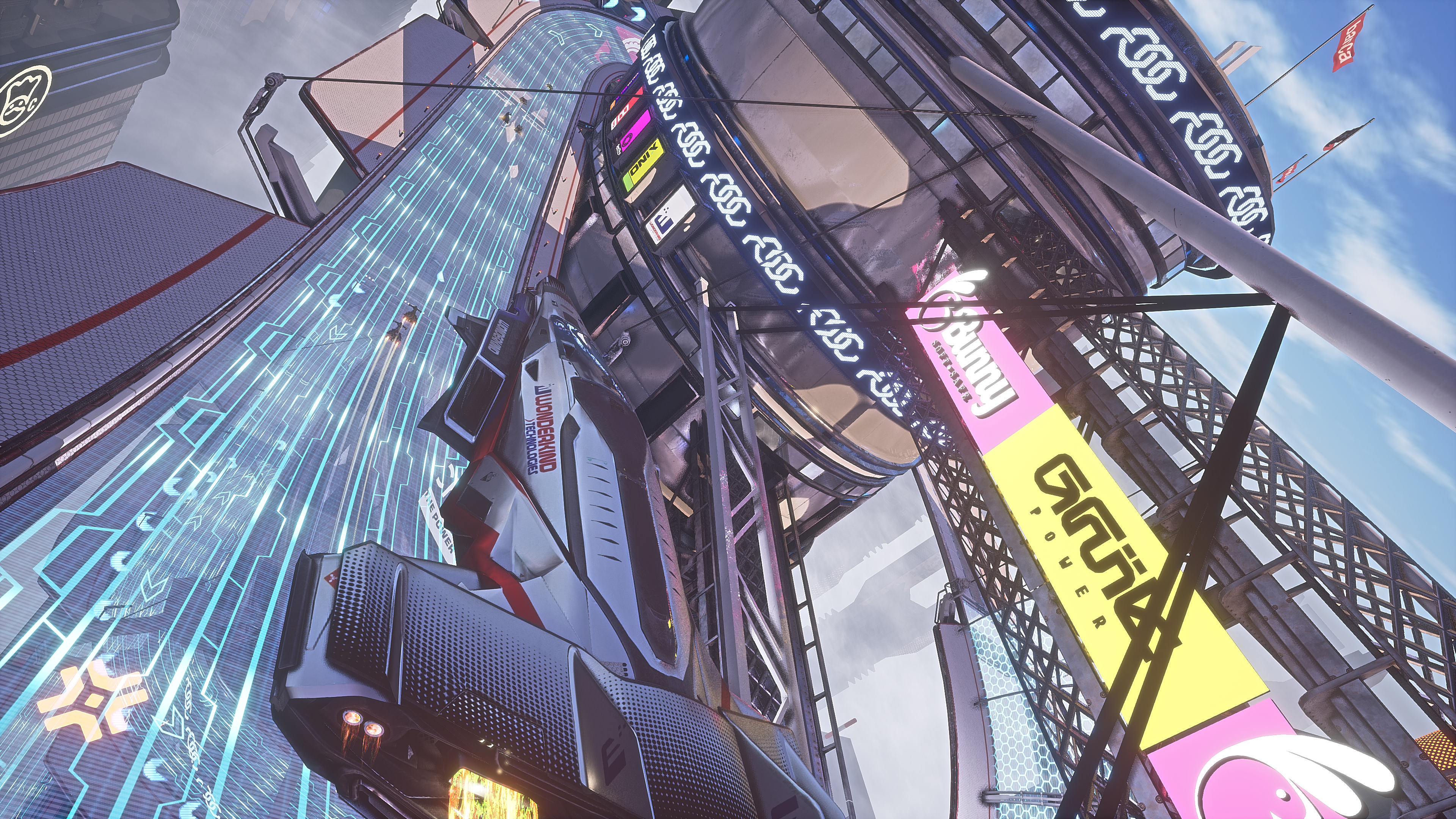 More uniquely, there’s the Storm mode, which adds a little battle royale to the mix. Racers need to remain within an increasingly restricted safe area, or take damage from the eponymous disturbance. It’s a fun mode, and is a surprisingly successful addition. I didn’t enjoy the Flowmentum mode as much though. The idea is your vehicle gets faster as time elapses, with your racer taking steady damage which is only maintained by passing through gates on track. It’s a neat concept, but actually resulted in me driving as slowly as possible, which seemed opposed to the game’s general theme.
