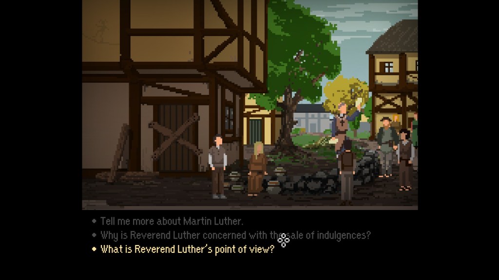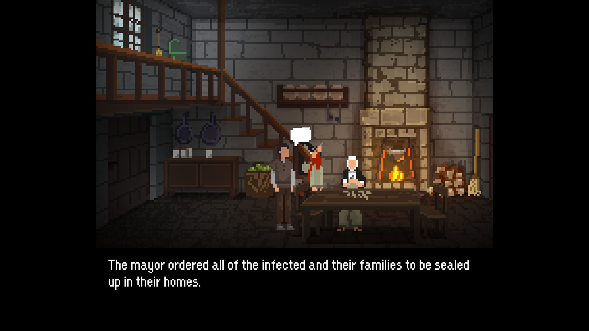 And there’s no elation to be found in the plot, either. It’s a very short game that won’t take more than two hours to complete, but it’s two hours of utter misery. Nothing good happens, people die of the plague, and then it ends. I’m not sure that this is the kind of entertainment that people need or want, especially after two years of COVID hell. (Read the room, guys!) It might have been more worthwhile if there was some kind of emotional arc, some kind of meaningful relationship developed with the other characters over the course of those two hours. But most of the characters appear and disappear after spouting only a few lines of disappointingly dry dialogue, and the closest you get to developing any kind of relationship is arging with an unhelpful nun who won’t share her vinegar.