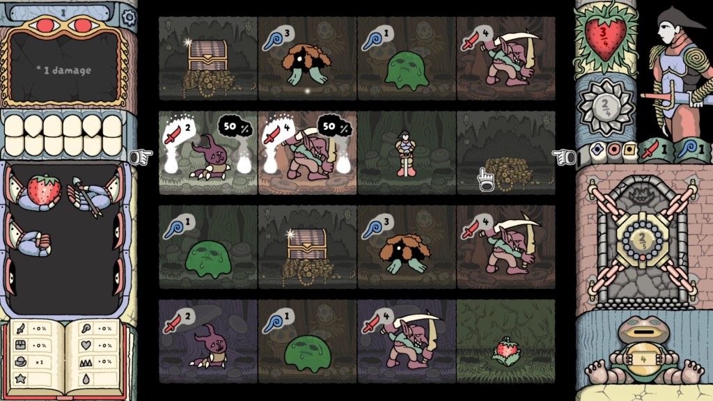 However, you can manipulate the probabilities with upgrades that, for example, increase the chance of landing on a treasure chest square. Plus there are collectible items that do things like wipe out all of the enemies on one row, and there’s a rechargable sun icon that lets you select a column rather than a row. It’s all very clever, and had me scratching my head trying to work out the optimum move, while the element of chance gave a frisson of excitement to every click. There’s a demo on Steam, give it a try yourself!