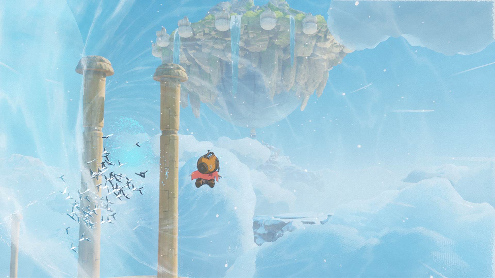 The similarities to a Studio Ghibli film are hard to miss. For a start, the floating island could be straight out of Laputa: Castle in the Sky, and the giant, rusting robots that litter the planet’s surface bear a stiking resemblance to the long-limbed mecha fellows from the same film. The plot, too, could be straight out of a Ghibli classic, focusing as it does on nature and the way humans have interrupted its balance, just as in films like Nausicaa: Valley of the Wind and Princess Mononoke. It’s Ghibli through and through. Even the gentle piano soundtrack bears the Ghibli hallmarks.