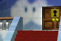Directly in front of you is a large wooden door with a big, central keyhole, although it seems to be unlocked. To the left lies a wooden door with an enormous star painted on it.